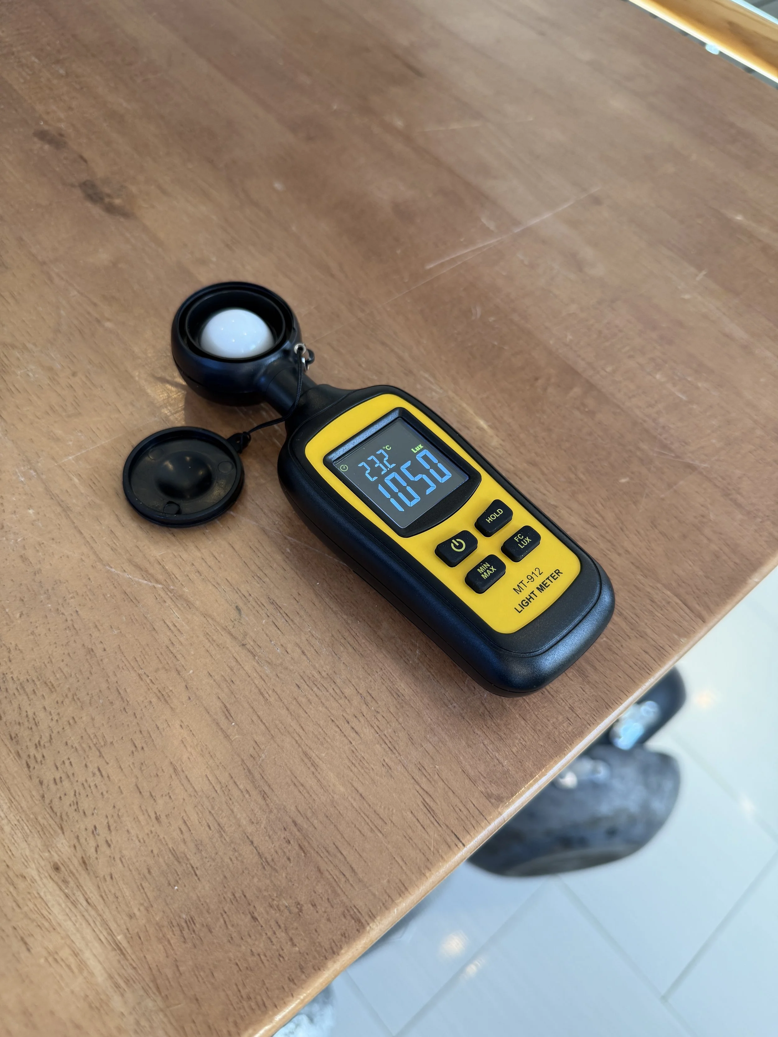Too bright - at 9400 lux, this direct late afternoon sun is great for occasional photo shoots to flex your fruits, but too much for sustained growing.